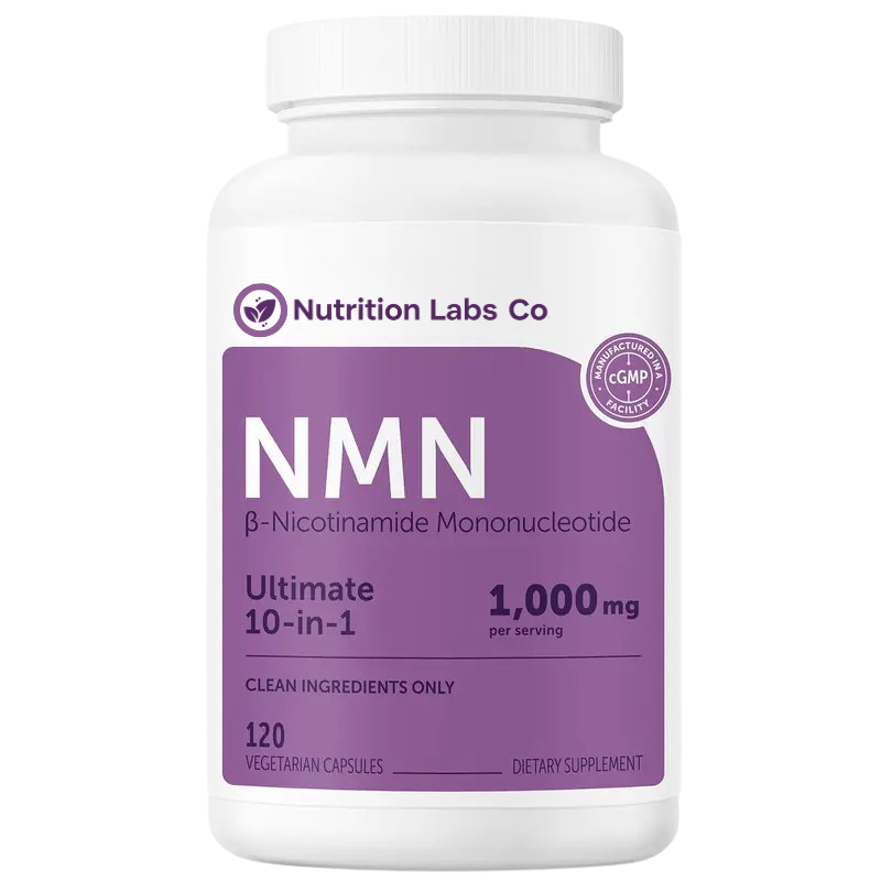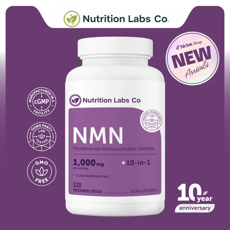 Nutrition Labs Co NMN Complex delivers β-nicotinamide mononucleotide (NMN) in its most effective form, combined with a 10-in-1 proprietary blend of antioxidants, coenzymes, and plant-based extracts. Every capsule is carefully crafted in a single, cGMP-compliant facility, ensuring the highest quality standards, purity, and consistency.