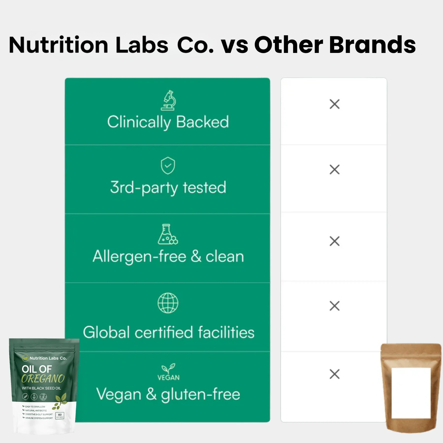 Unlike other supplements, Nutrition Labs Co. contains only high-carvacrol oregano oil and black seed oil—no fillers, no junk, just pure botanical power.